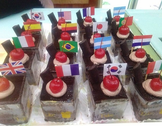 Cake yang dihiasi dengan bendera sejumlah negara yang tampil di Piala Dunia kali ini yaitu Choco Mouse, Black Forest, Cendol Cake dan Chantily.