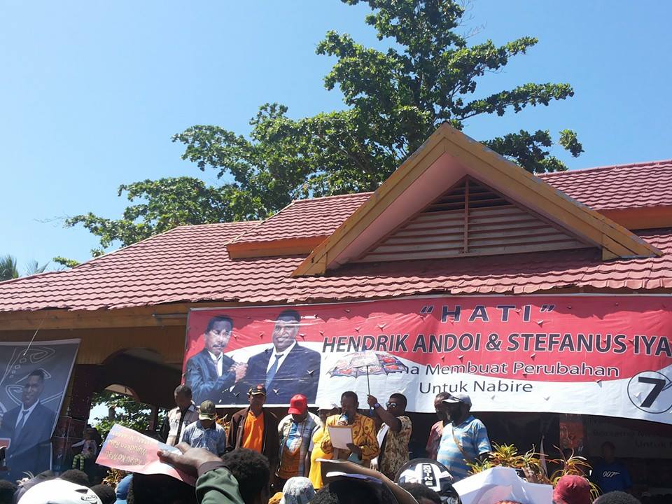 Pasangan kandidat calon Bupati dan Wakil Bupati Nabire nomor urut 7, Hendrik Andoi & Stevanus Iyai atau yang lebih dikenal dengan julukan HATI, kamis pagi tadi (03/12), menggelar kampanye terbuka pada hari ke 7 jadwal kampanye terbuka sesuai dengan jadwal yang ditetapkan oleh KPU Nabire.