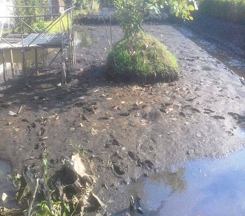 Berbeda dengan Iwan dan Rahman, Bapak Akhir, warga kampung Waroki Nabire, harus mengalami kerugian akibat kolam ikannya mengalami kekeringan.