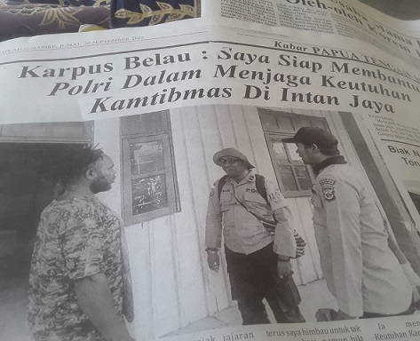 Intan Jaya, Menanggapi pemberitaan di salah satu media cetak lokal di Nabire dengan judul “Karpus Belau : Saya Siap Menjaga Polri Dalam Menjaga Keutuhan Kamtibmas di Intan Jaya”, Karpus Belau angkat bicara terkait hal ini.