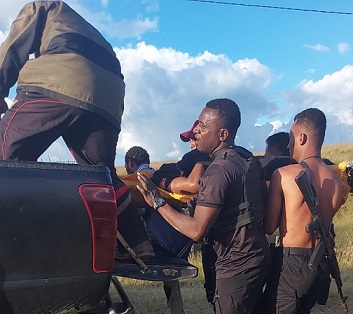 Saat Bripda Diego Rumaropen sendirian di lokasi, datang 2 orang dengan menggunakan parang membacok Bripda Diego Rumaropan dan merampas 2 pucuk senpi dan melarikan diri dari TKP.