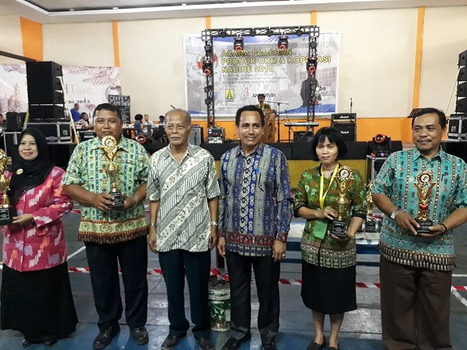 Di akhir acara, Asisten I Setda Nabire memberikan hadiah kepada stand terbaik kategori Koperasi/UKM serta stand terbaik dari swasta.