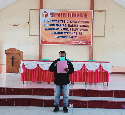 Adapun pelantikan dan bimbingan teknis pengawasan TPS kelurahan dan kampung, ini adalah untuk Pemungutan Suara Ulang (PSU) Bupati dan Wakil Bupati Kabupaten Nabire Tahun periode 2020 -2024.