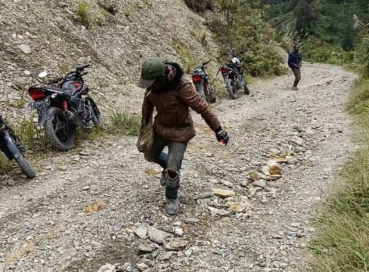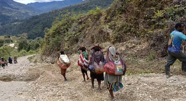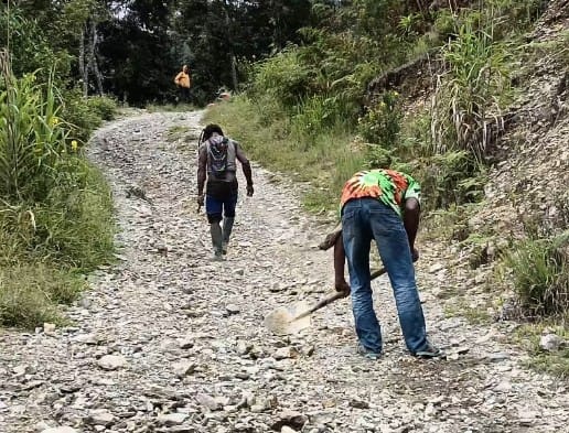 Para Pengojek di Intan Jaya Perbaiki Jalan Rusak Menuju Titigi