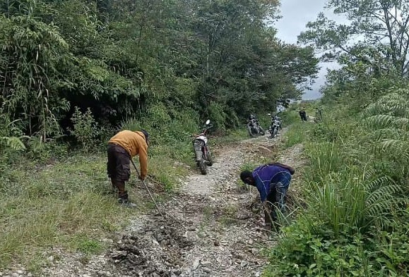 Dalam beberapa hari terakhir, para pengojek bekerja keras untuk memperbaiki jalan yang berlubang dan berbatu tersebut. Mereka menggunakan alat sederhana seperti cangkul, lingis, dan sekop untuk menggali tanah dan menyeimbangkan permukaan jalan.