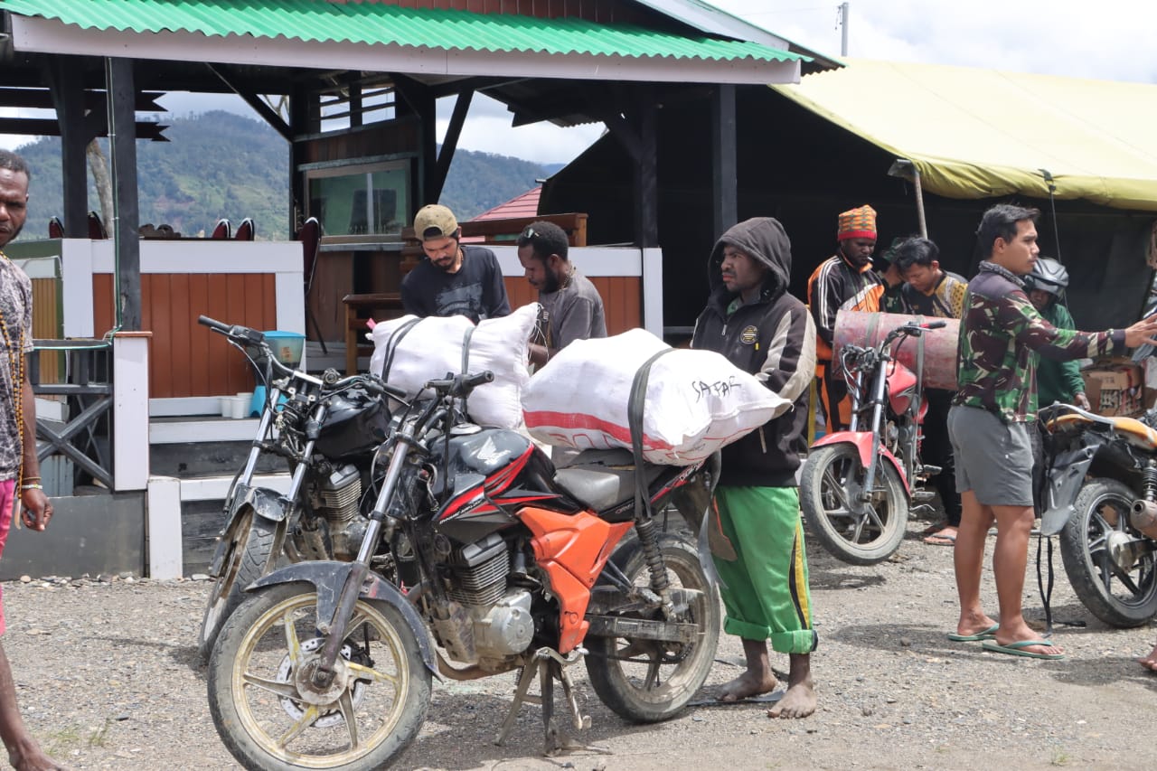 Intan Jaya, Para pengojek di Intan Jaya bekerja sama untuk memperbaiki jalan raya menuju Titigi yang sebelumnya rusak parah. Jalan yang menghubungkan Yokatapa dan Titigi merupakan akses utama bagi masyarakat setempat untuk mengakses berbagai fasilitas umum seperti pasar dan rumah sakit (03/05).