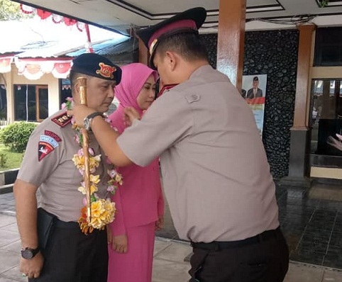 Dalam penyambutan itu, juga diberikan kalung bunga sebagai tanda penghormatan dan selamat datang di tempat tugas yang baru kepada Kapolres Nabire yang baru.