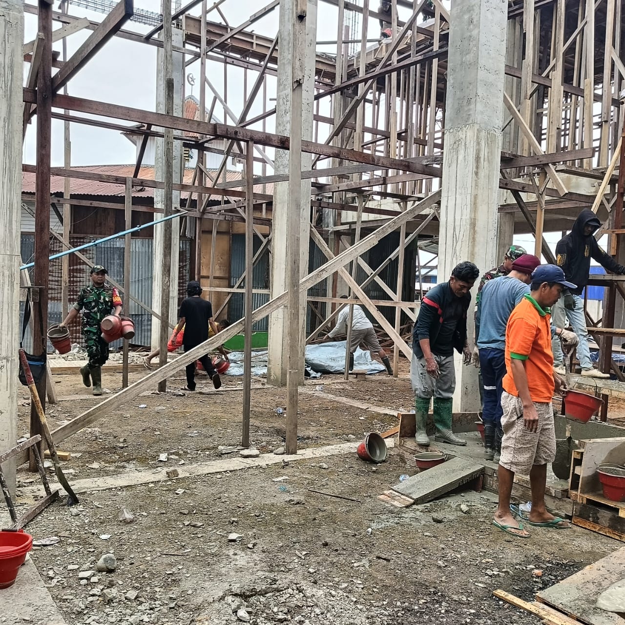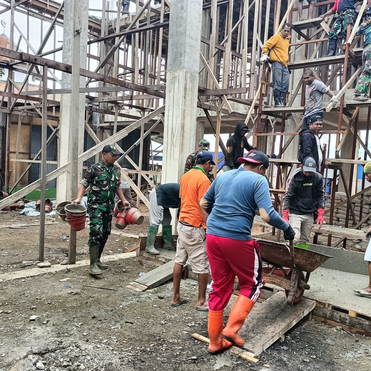 Dogiyai, Bertempat di Masjid Nurul Al-Khautsar, Kampung Ikebo, Kabupaten Dogiyai, personil Koramil 1705-04/Moanemani bersama Satgas 527/BY dan masyarakat melaksanakan kegiatan pengecoran Mesjid Nurul Al-Khautsar, Selasa (21/11/2023).