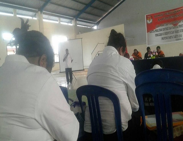 Sementara itu Ketua KPU Nabire, Nelius Agapa ST dalam sambutannya mengatakan, pembentukan PPD dan PPS yang harusnya digelar 8-11 November 2017 harus tertunda karena persoalan dana dari KPU Provinsi. Setelah ada kejelasan dari KPU Provinsi, barulah acara ini dilaksanakan.