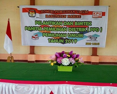 Setelah melalui rangkaian seleksi, akhirnya Komisi Pemilihan Umum (KPU) kabupaten Nabire, resmi melantik anggota Panitia Pemilihan Distrik se-kabupaten Nabire untuk Pemilu Tahun 2019, yang dirangkai dengan Bimbingan Teknis, Jumat 27 April 2018 bertempat di Aula Gereja GKI Sion Kampung Harapan, Nabire.