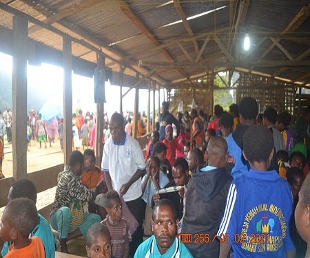 Hadir dalam acara peletakan batu pertama yaitu unsur Tripida, para pimpinan gereja Klasis Mapia Wilayah III Papua dan jemaat.