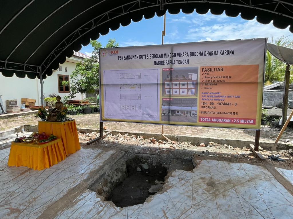 Nabire, Bertempat di kompleks Vihara Buddha Dharma Karuna, Kampung Wadio, Distrik Nabire Barat, kabupaten Nabire, Papua Tengah, telah dilaksanakan peletakan batu pertama pembangunan Kuti dan Sekolah Minggu Buddha, Minggu (29/10/2023).