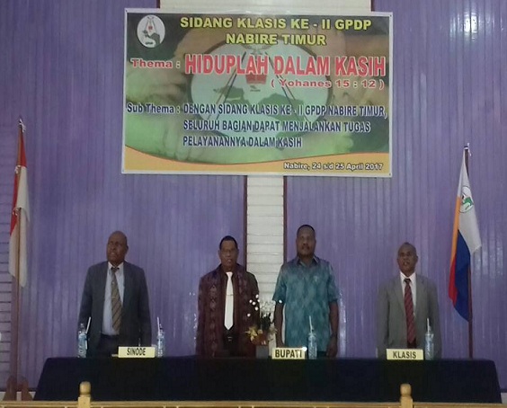 Staf Ahli Bupati Nabire, Yasor Victor Sawo, mewakili Bupati Nabire, membuka secara resmi Sidang Klasis ke 2, Gereja Pentakosta Di Tanah Papua (GPDP) Nabire Timur, yang dilaksanakan di Gereja Elim Oyehe Nabire, senin 24 april 2017.