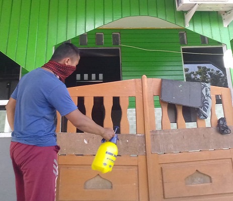Pemuda Masjid Al Wasilah Kampung Waroki Lakukan Penyemprotan Disinfektan