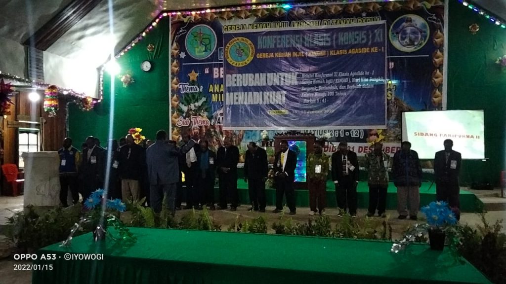 Paniai, Konferensi Perdana Gereja Kingmi, Klasis Agadide, kabupaten Paniai, berjalan dengan sukses dan lancar selama 3 hari, dari tanggal 13-15 Januari 2022, di Aula Berkat, Klasis Agadide, Toyaimoti, Distrik Aradide, kabupaten Paniai, Papua.