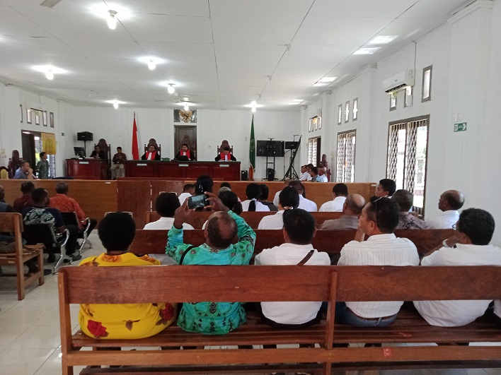 Dalam persidangan ini, Majelis Hakim, Yanuar Nurul Fahmi, SH, menolak secara keseluruhan 11 gugatan yang dilayangkan oleh Penggugat pertama Didimus Mote, SH., M,Si dan Penguggat kedua, Drs. EL. Sitorus M.Si., kepada Tergugat Rektor USWIM Nabire Petrus Izaak Suripatty.