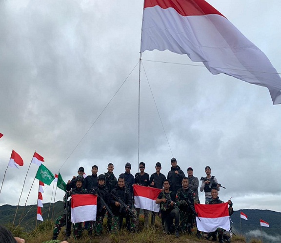 Paniai, Aparat Gabungan yang terdiri dari Satgas Mandala, Kodim persiapan Paniai, Yonif 521 Beserta Badan Intelijen Negara dan Masyarakat Kabupaten Paniai melakukan pengibaran Bendera Sang Saka Merah Putih di gunung Bobairo, kabupaten Paniai, Papua.