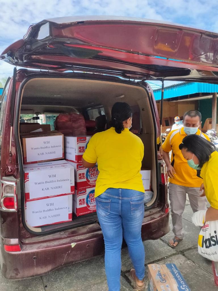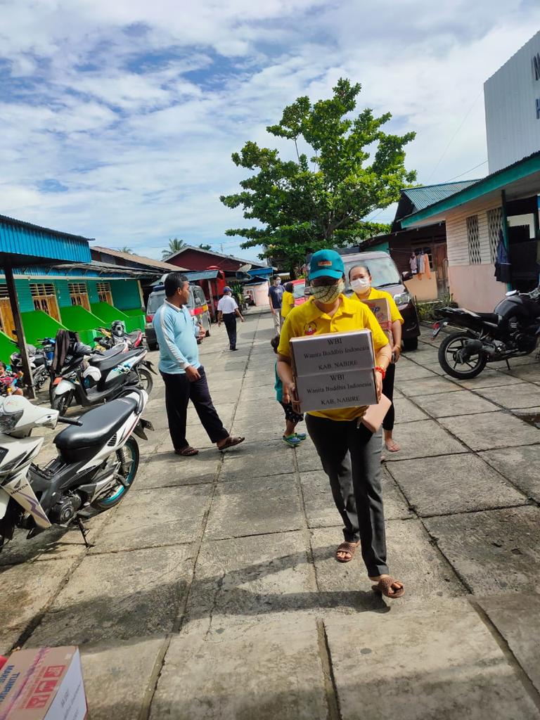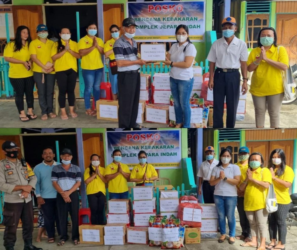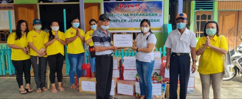 Nabire, Pengurus Cabang Wanita Buddha Indonesia kabupaten Nabire, memberikan bantuan kepada warga yang terkena musibah kebakaran di Girimulyo, Nabire.