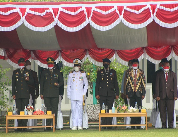 Nabire, Upacara HUT Kemerdekaan RI ke-76 di kabupaten Nabire, berjalan aman dan lancar, berlangsung di lapangan Kantor Bupati Nabire, selasa (17/08/21).