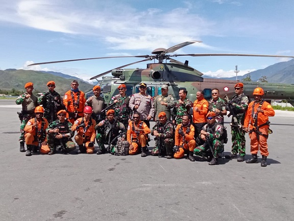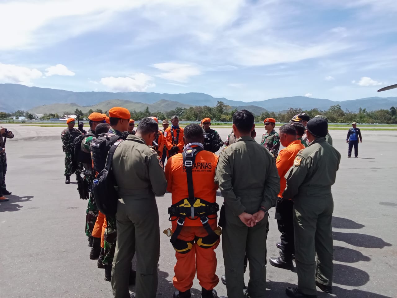Tim Evakuasi yang terdiri dari 6 personil Basarnas dan 6 personil Paskhas tiba di Bandara Wamena pukul 09.47 WIT.