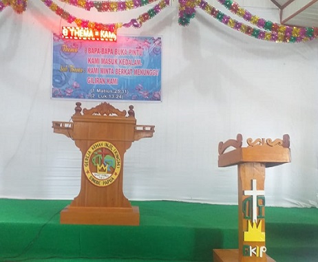 “Dengan berkat pertolongan Tuhan selama 58 tahun sudah banyak orang berusaha mau selesai dari pendidikannya tapi gagal terus sehingga sampai saat ini bisa dibangun Gedung Gereja baru yang megah ini sama seperti Gereja yang ada di kota-kota besar,” katanya.