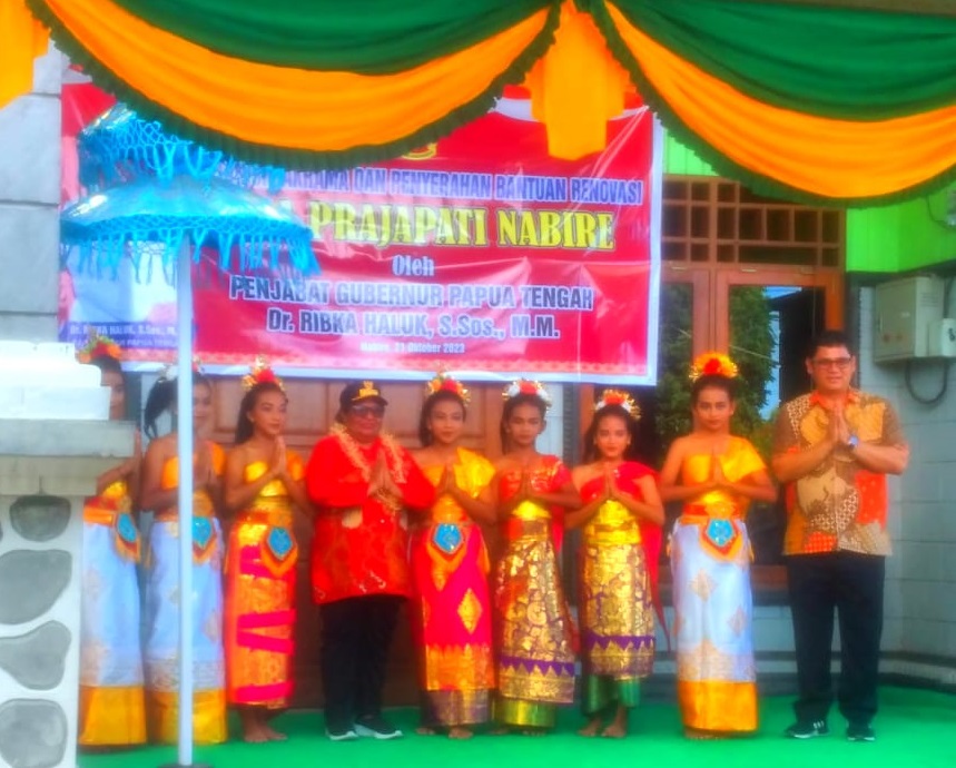 Nabire, Usai menyerahkan bantuan kepada Yayasan Buddha Dharma Nabire, Ibu Pj.Gubernur Papua Tengah bersama rombongan juga memberikan bantuan sebesar 500 juta Rupiah untuk pembangunan Pura Prajapati di SP1 Bumi Raya, Distrik Nabire Barat, kabupaten Nabire, Papua Tengah, Sabtu (21/10/2023) sore.