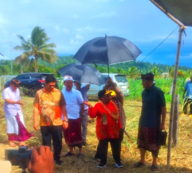 Selain menyerahkan bantuan 500 juta Rupiah, Ibu Pj.Gubernur Papua Tengah juga meletakan batu pertama pembangunan Pura Prajapati