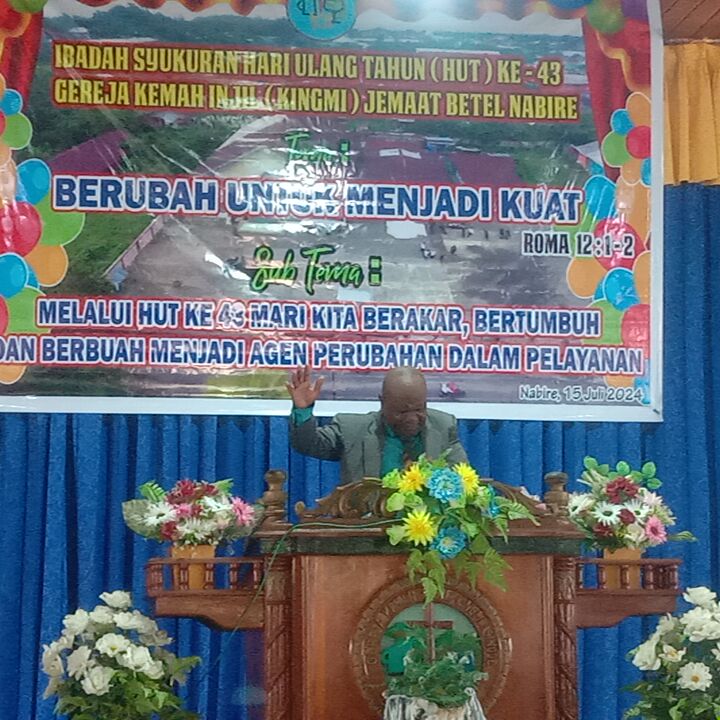 Nabire, 16 Juli 2024 – Gereja Kemah Injil Kingmi di Tanah Papua Jemaat Betel Auri Nabire melaksanakan perayaan Hari Ulang Tahun (HUT) ke-43 pada 15 Juli 2024. Acara ini diadakan di Gedung Gereja Jemaat Betel Auri Nabire dan dihadiri oleh jemaat serta para undangan lainnya.