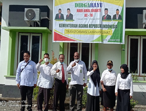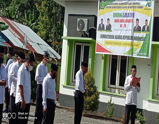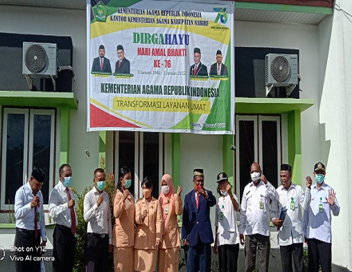 Nabire, Jajaran Kantor Kementerian Agama kabupaten Nabire melaksanakan upacara peringatan Hari Amal Bhakti (HAB) ke-76, tahun 2022, Senin (03/01).