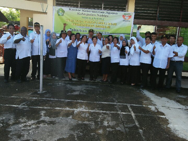 Bertempat di halaman Kantor Kementerian Agama kabupaten Nabire, Rabu, 3 Januari 2018, jajaran ASN Kantor Kementerian Agama Nabire menggelar upacara Hari Amal Bhakti Kementerian Agama ke 72, tahun 2018, tingkat kabupaten Nabire.