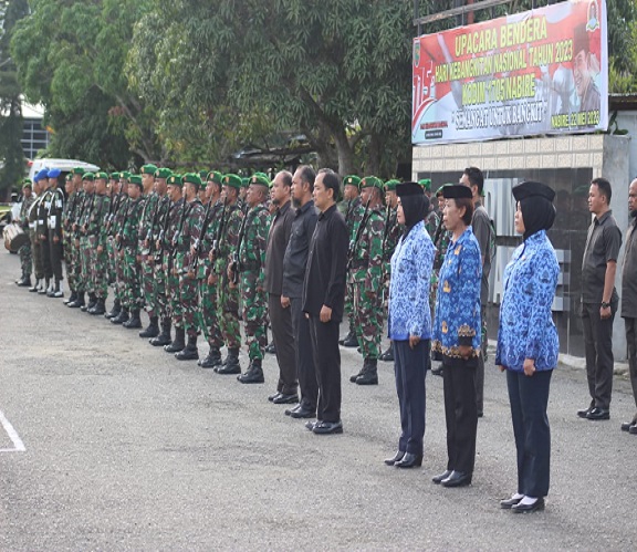 Nabire, Dalam rangka memperingati Hari Kebangkitan Nasional ke-115, Tahun 2023, Dandim 1705/Nabire, Letkol Inf Doni Firmansah, M.Han., memimpin upacara bendera di lapangan hitam Kodim, Senin (22/05/2023).