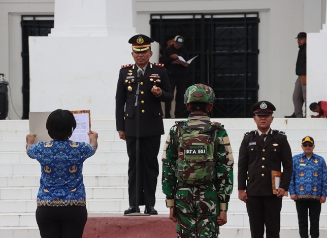 Dalam amanatnya, Kapolres Paniai menekankan pentingnya menjaga persatuan dan kesatuan bangsa sebagai benteng menghadapi segala bentuk ancaman perpecahan.