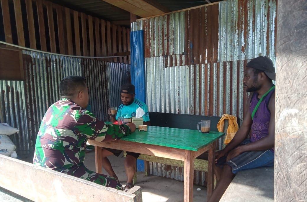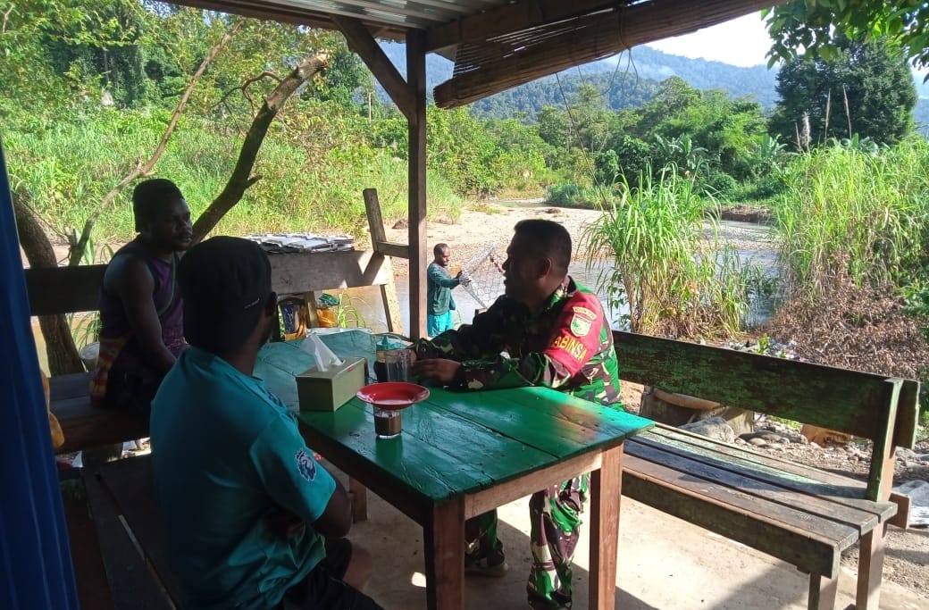 Nabire, Dalam rangka memperkuat kemanunggalan antara TNI dengan rakyat, Babinsa Siriwo, Serka Alamsyah, melaksanakan Komunikasi Sosial (Komsos) dengan warga binaan di Kampung Unipo, Distrik Siriwo, kabupaten Nabire, Rabu (20/03/2024).