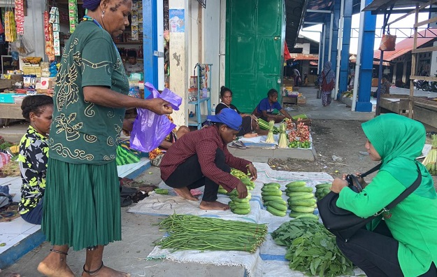 “Kami dengan senang hati berbelanja di pasar ini dan memborong dagangan mama-mama Papua. Dengan ini, kami telah membantu meningkatkan perekonomian mereka serta membantu memenuhi kebutuhan hidup mereka,” ungkap Ny. Doni Firmansyah dengan tulus.