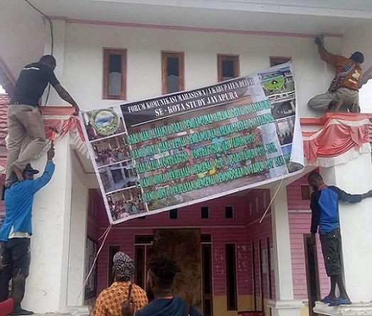 Forum Komunikasi Mahasiswa Deiyai Kota Studi Jayapura (FKMKD) melakukan aksi demo damai di Kantor Dinas Pendidikan kabupaten Deiyai, Rabu 18 Juli 2018.