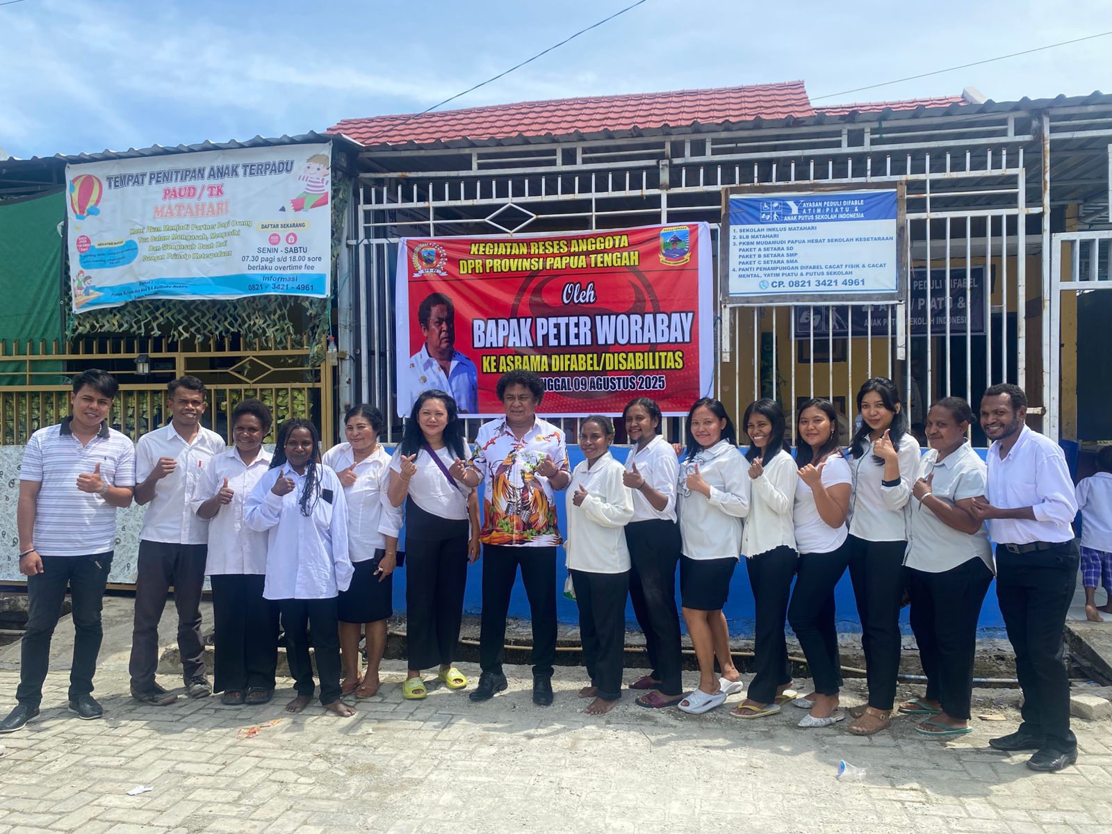 Nabire, 11 Agustus 2025 – Anggota DPR Papua Tengah, Peter Worabay, mengunjungi Yayasan Difabel Nabire di Graha Kelapa Dua, Kalibobo, Senin (11/8/2025).