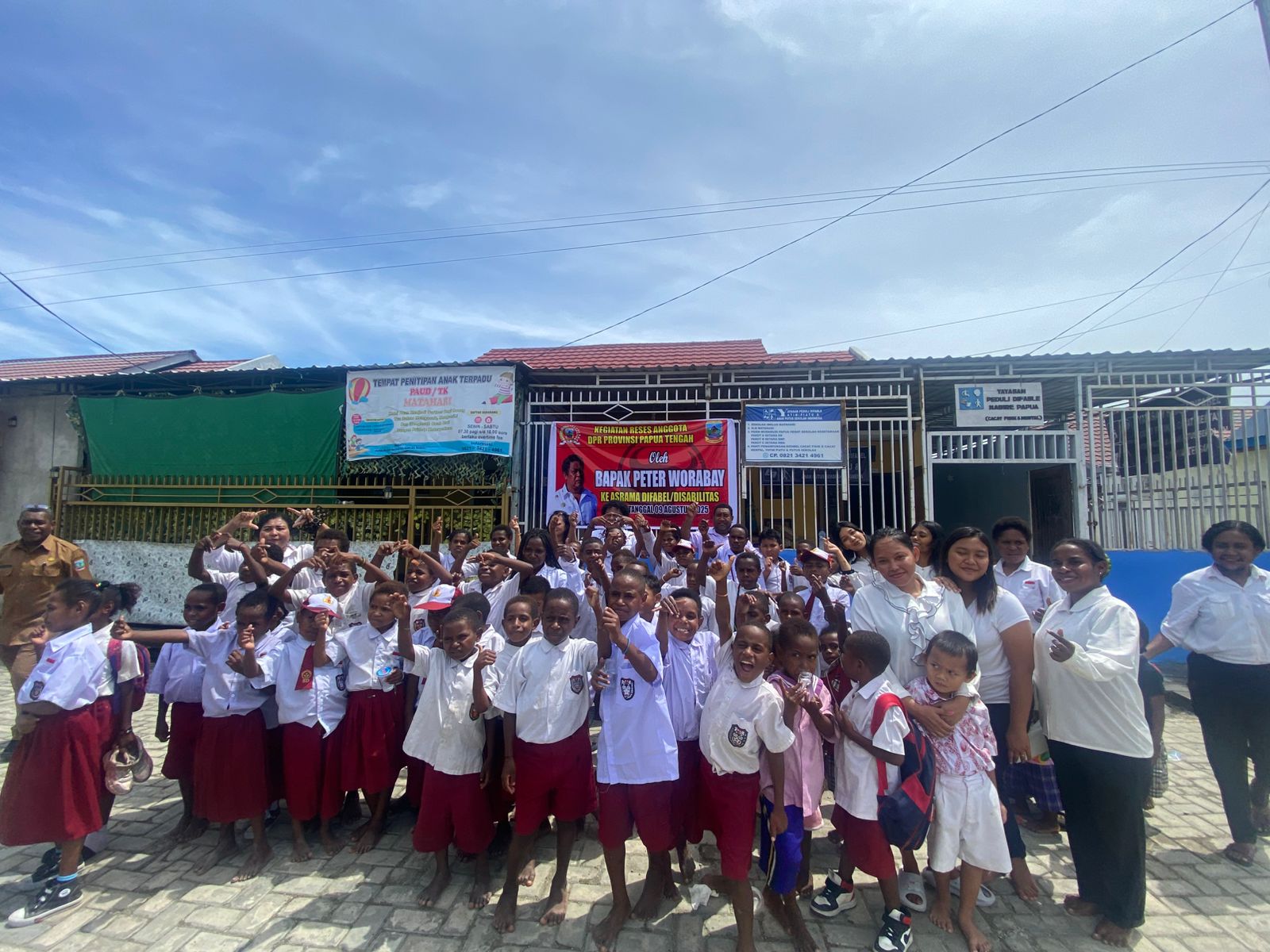 Peter Worabay Santuni Anak Difabel dan Yatim di Nabire, Desak Pemprov Bangun Sekolah Layak