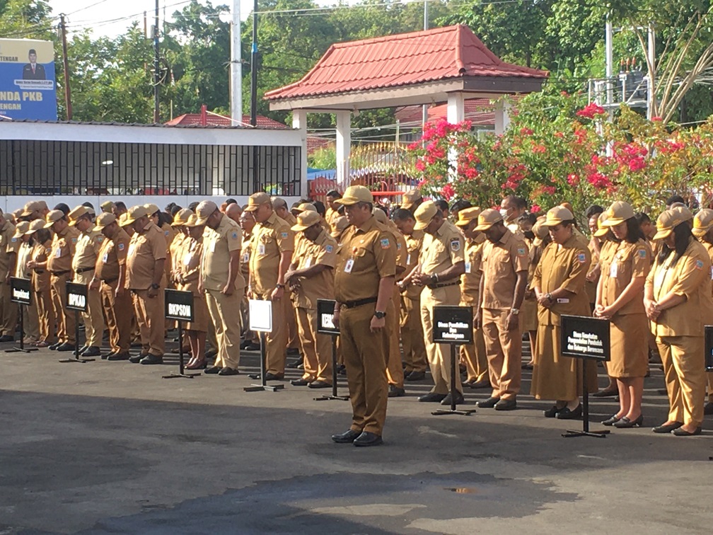 Nabire, Penjabat Sekda Papua Tengah. Anwar Harun Damanik, S.STP., MM., memimpin Apel Pagi di lingkungan Pemerintah Provinsi Papua Tengah, Senin (15/01/2024).