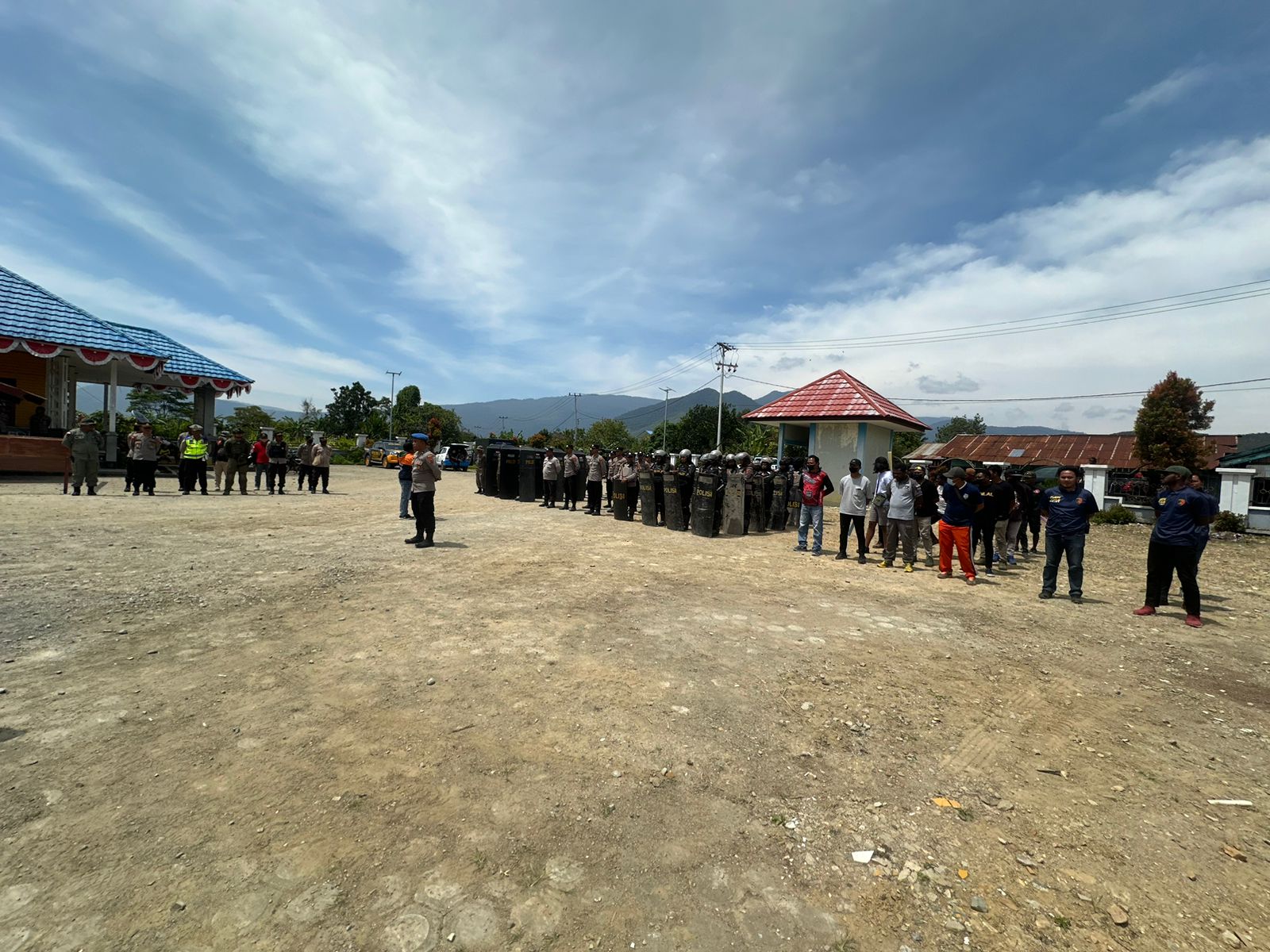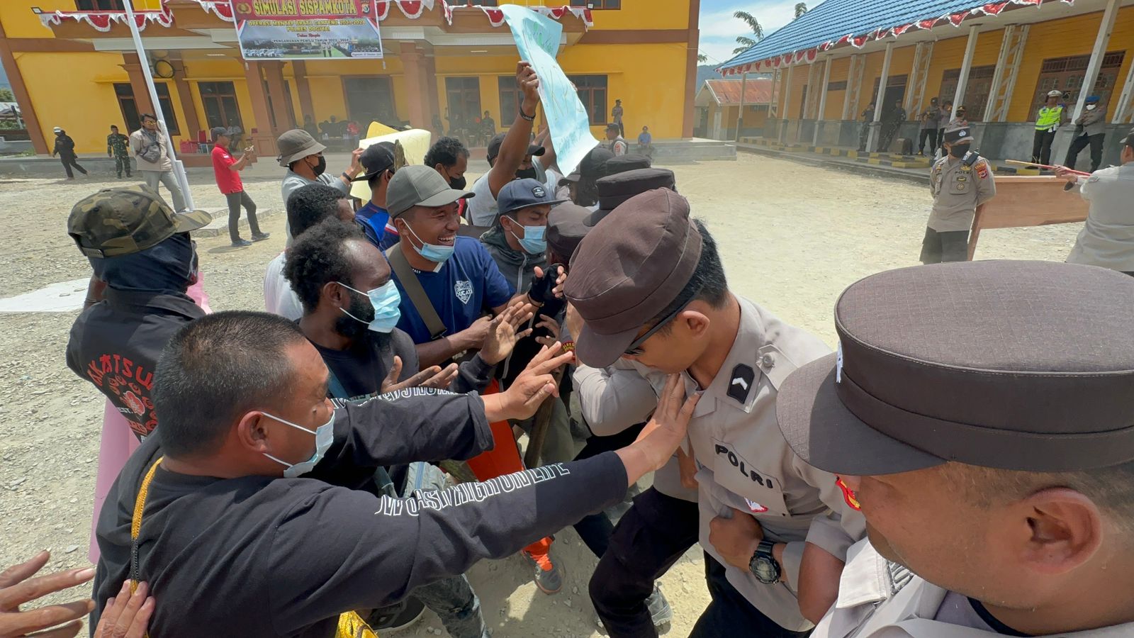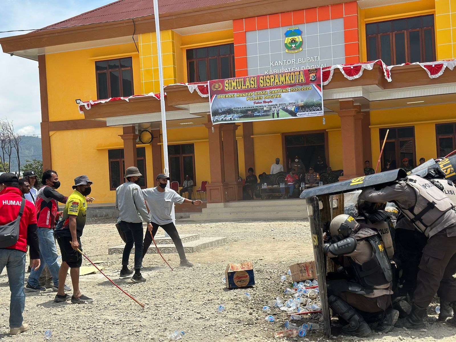 Dogiyai, Dalam rangka menyambut Pemilu tahun 2024, Polres Dogiyai melaksanakan simulasi Sispamkota yang bertempat di halaman Kantor Bupati Dogiyai, Jumat (27/10/2023).
