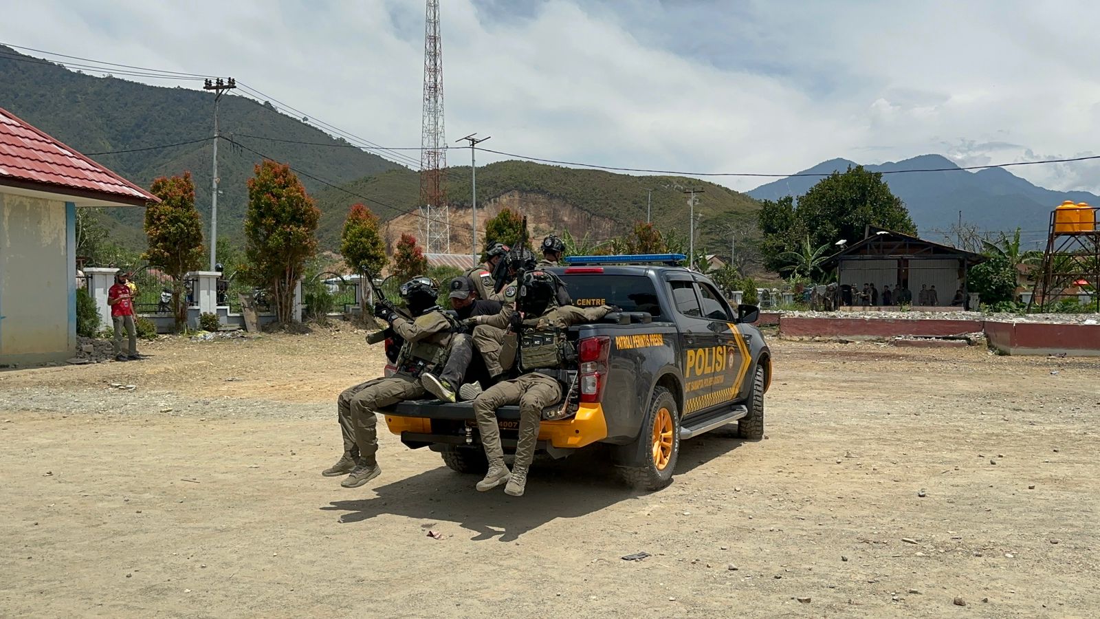Pj. Bupati Dogiyai, Drs. Petrus Agapa, M. Si bersama Asisten 2 dan 3 Setda Dogiyai serta Wakapolres Dogiyai dan beberapa undangan dari pimpinan TNI yang ada di Dogiyai turut hadir menyaksikan simulasi Sispamkota dalam rangka Operasi Mantap Brata Cartenz 2023-2024 Polres Dogiyai.