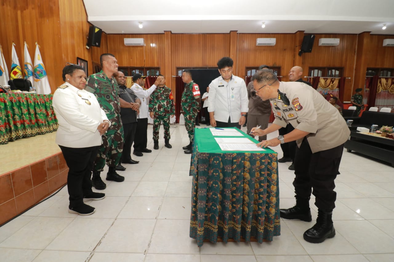 “Ketiga Pemerintah Provinsi Papua Tengah dan Pemerintah Kabupaten Intan Jaya berkomitmen untuk mendorong terdistribusinya logistik Pemilu Tahun 2024 ke Kabupaten Intan Jaya. Keempat berkomitmen untuk mendukung suksesnya penyelenggaraan Pemilu Tahun 2024 yang akan dilaksanakan pada 14 Februari 2024,” jelasnya.