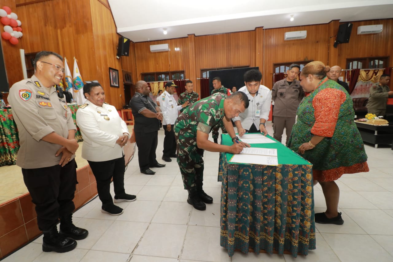 “Terakhir poin kelima Pemerintah Provinsi Papua Tengah, Pemerintah Kabupaten Intan Jaya bersama TNI-POLRI dan Masyarakat (Tokoh Adat, Tokoh Agama, Tokoh Perempuan, dan Tokoh Pemuda) berkomitmen untuk senantiasa menjaga stabilitas keamanan di Kabupaten Intan Jaya,” tandasnya.