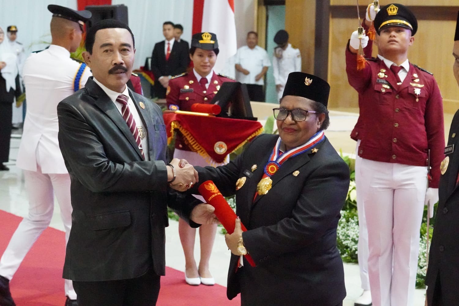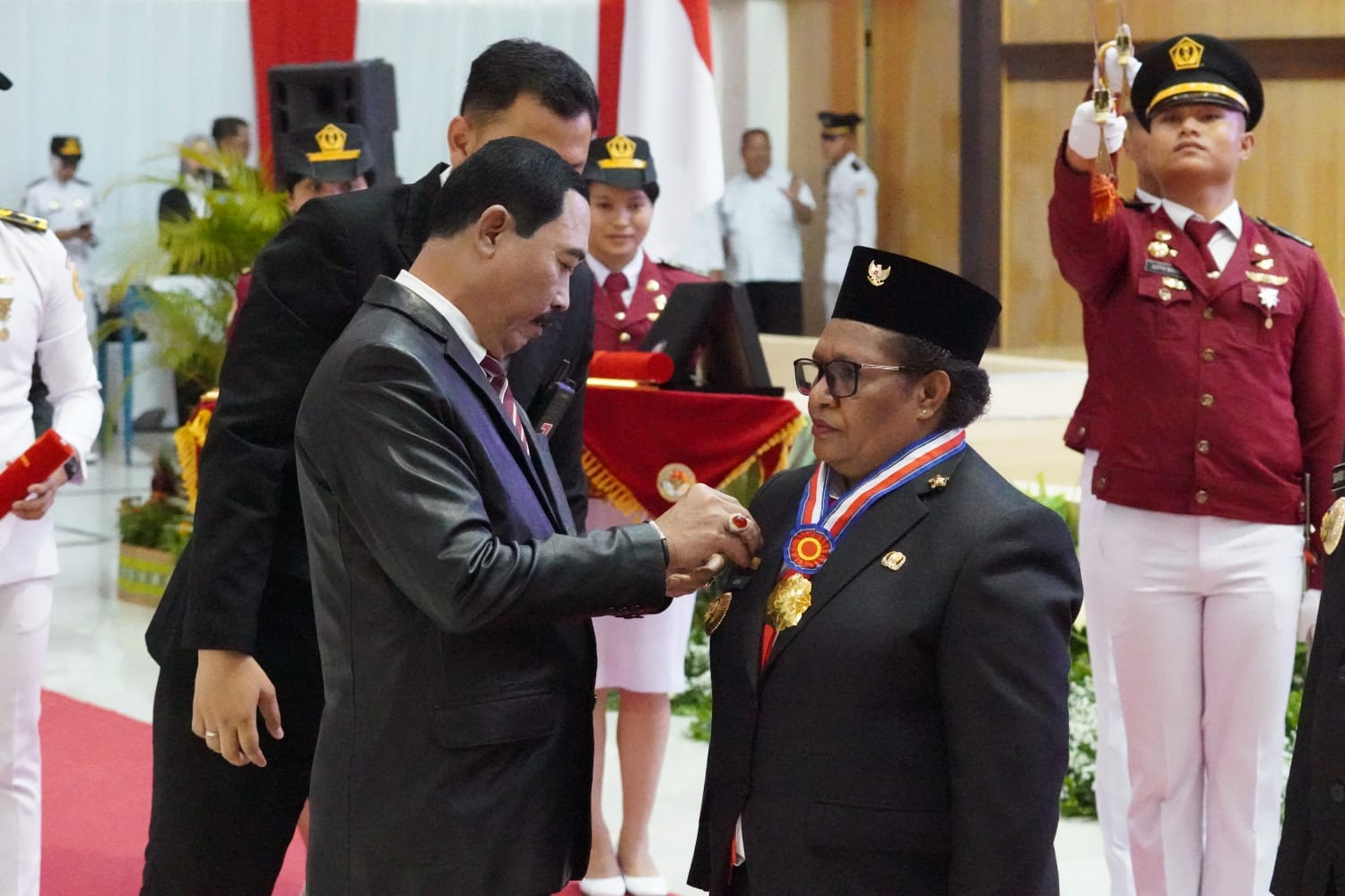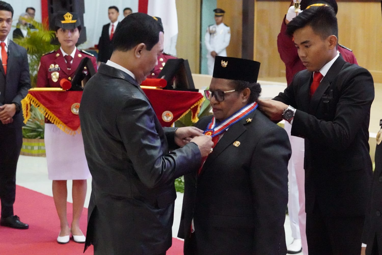 “Beliau adalah srikandi yang berjuang untuk kesejahtraan Papua Tengah dan berkembangnya daerah tersebut. Untuk itulah tanda kehormatan Kartika Pamong Praja Madya dan tanda alumni kita berikan,” ucapnya.