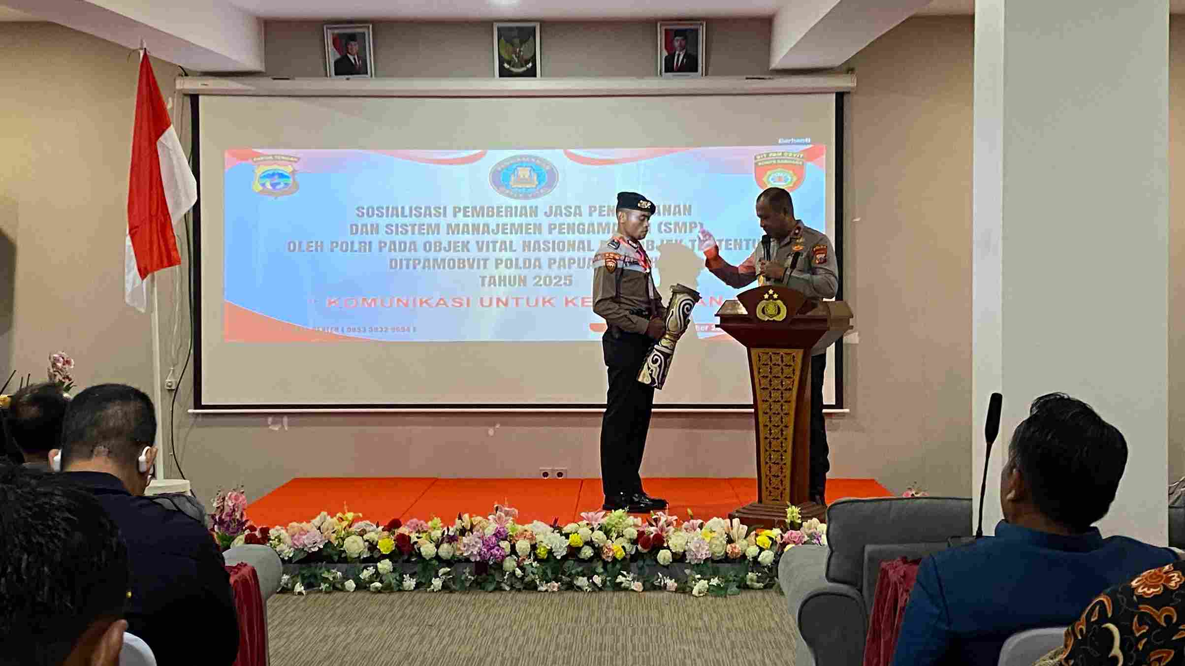 Nabire, 24 September 2025 – Polda Papua Tengah melalui Direktorat Pengamanan Objek Vital (Ditpamobvit) menggelar sosialisasi pemberian jasa pengamanan dan sistem manajemen pengamanan (SMP) pada objek vital nasional (Obvitnas) dan objek tertentu.