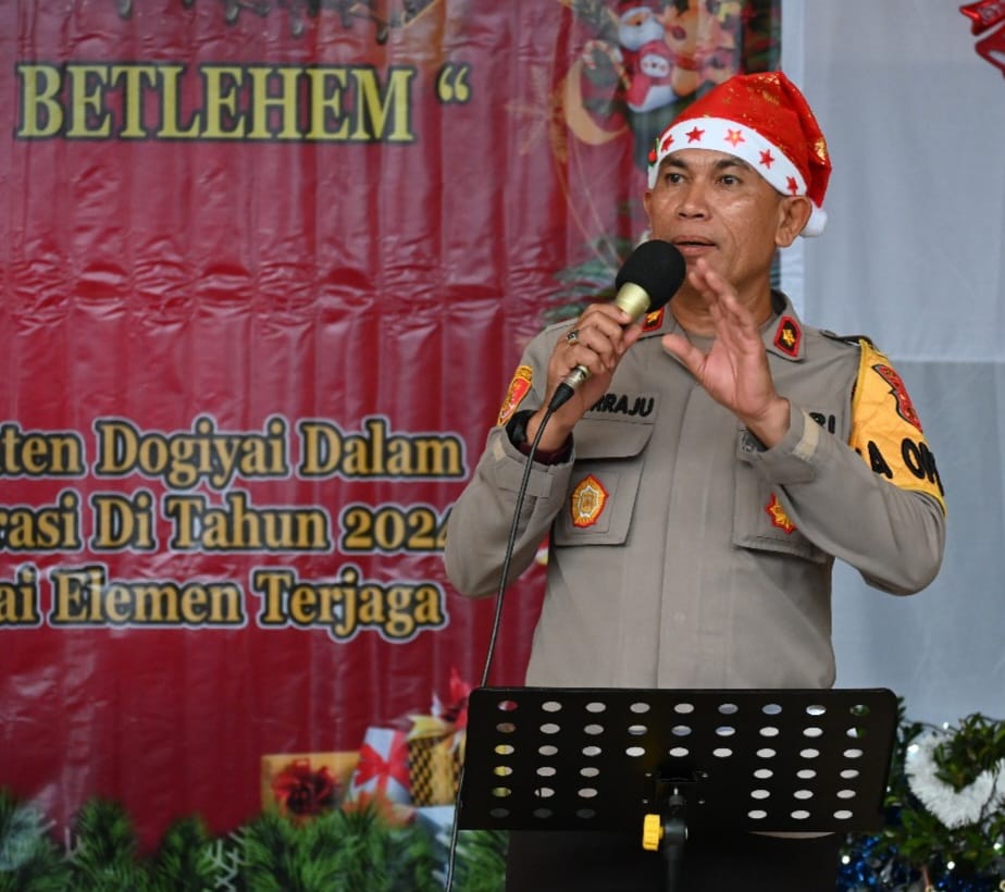 Dalam sambutannya, Kapolres Dogiyai Kompol Sarraju, S.H. menyampaikan pesan mendalam tentang makna Natal: