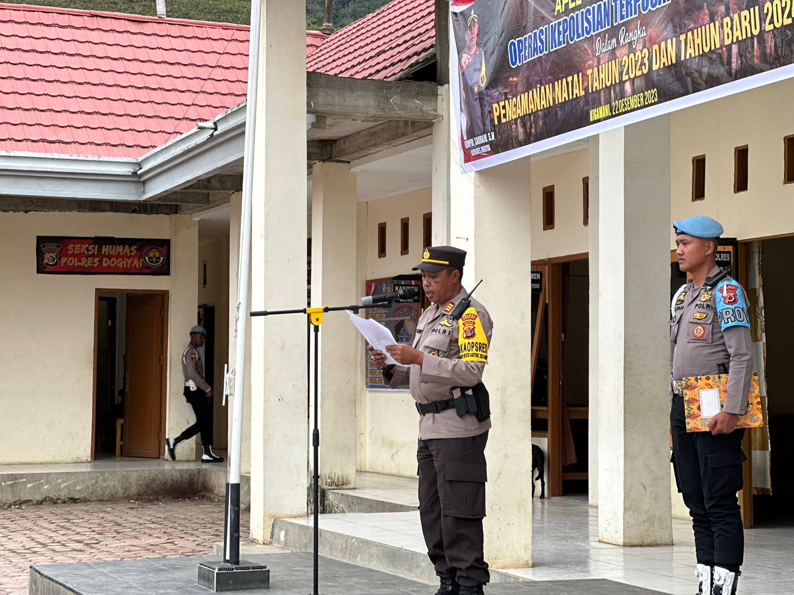Polres Dogiyai Melaksanakan Apel Gelar Pasukan Operasi Lilin 2023, bertempat di lapangan Apel Polres Dogiyai. Kamis (21/12/2023). Apel ini dipimpin oleh Kapolres Dogiyai diwakili Wakapolres Dogiyai, AKP Aksan Husain, S.H.