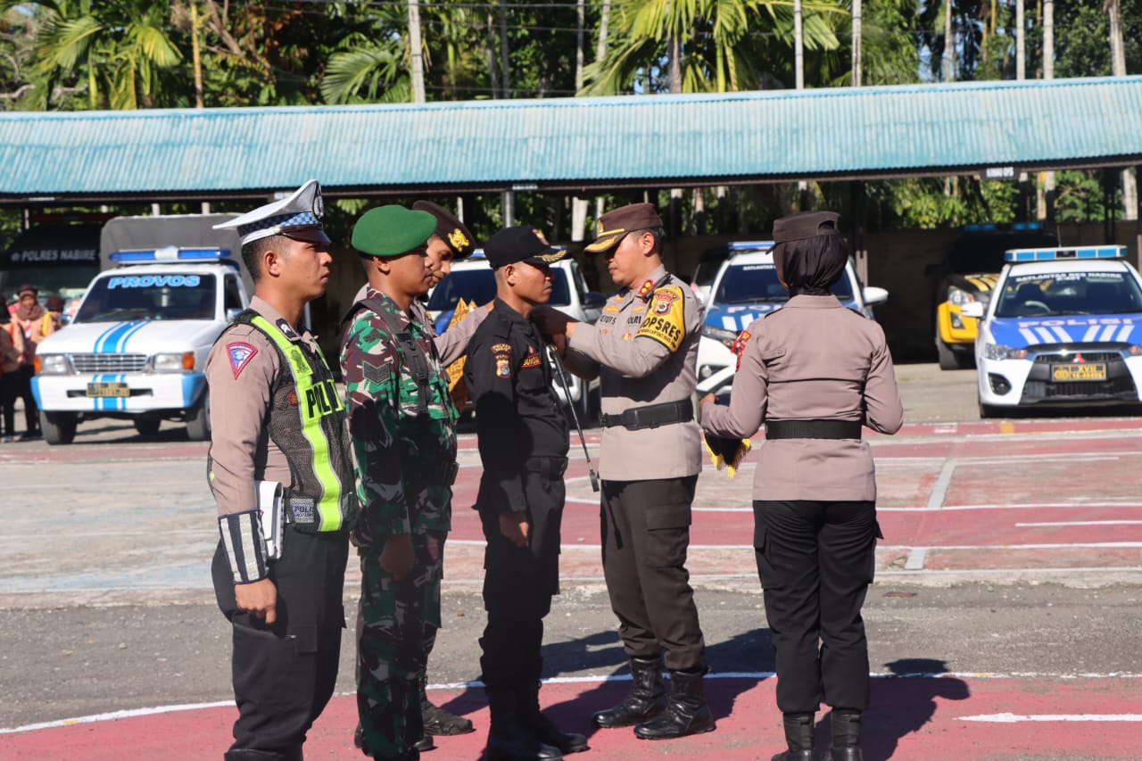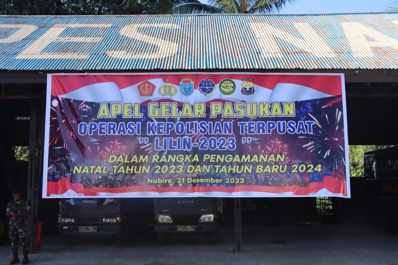Nabire, Dalam rangka menyambut hari Natal 2023 dan Tahun Baru 2024, Polres Nabire melaksanakan Apel Gelar Pasukan Operasi Lilin Cartenz tahun 2023 di halaman Polres Nabire, Kamis (21/12/2023).