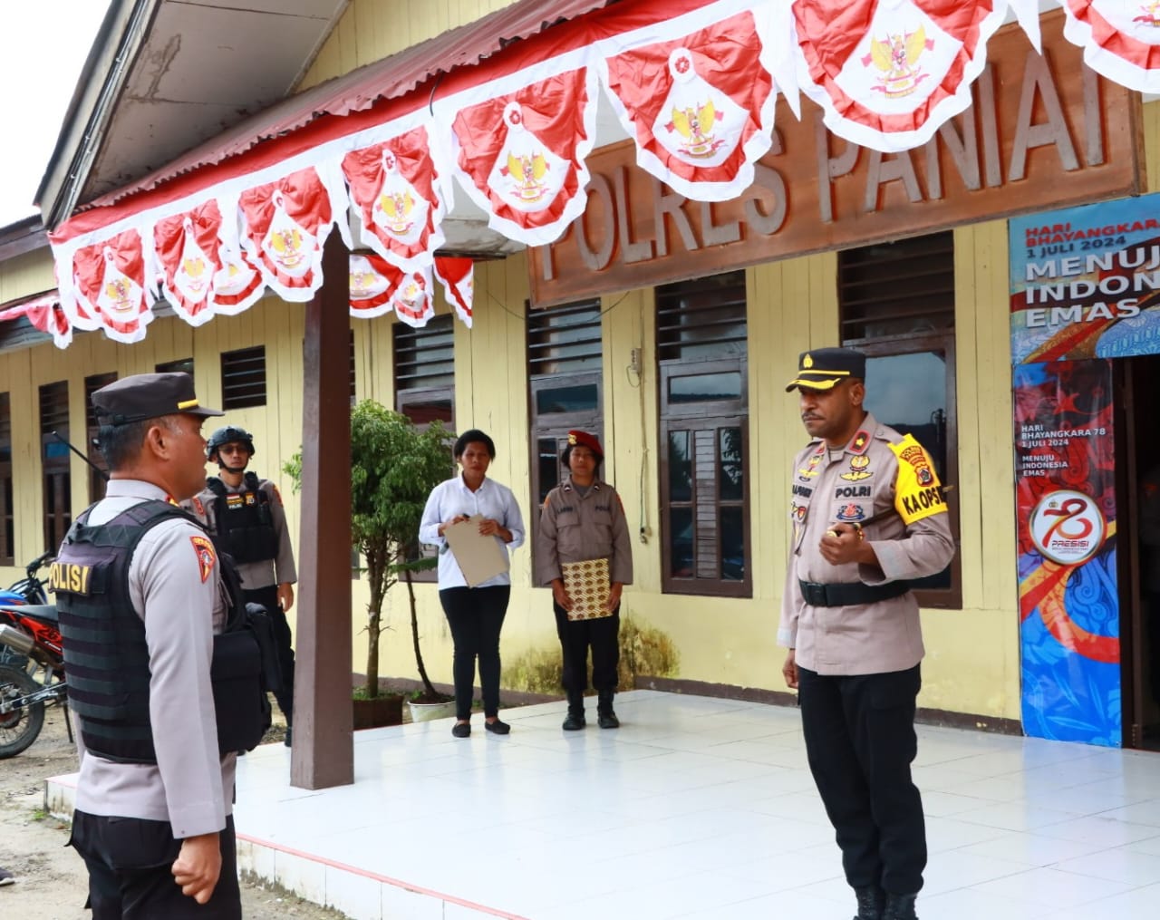 Paniai, 6 Agustus 2024 – Polres Paniai mengadakan apel pengecekan perlengkapan sarana dan prasarana (sarpras) pendukung Operasi Mantap Praja Cartenz 2024, yang bertujuan mempersiapkan pengamanan Pemilukada 2024 di Kabupaten Paniai. Apel ini dilaksanakan pada Selasa, 6 Agustus 2024, pukul 09.00 WIT, di Lapangan Apel Polres Paniai, Madi, Distrik Paniai Timur.