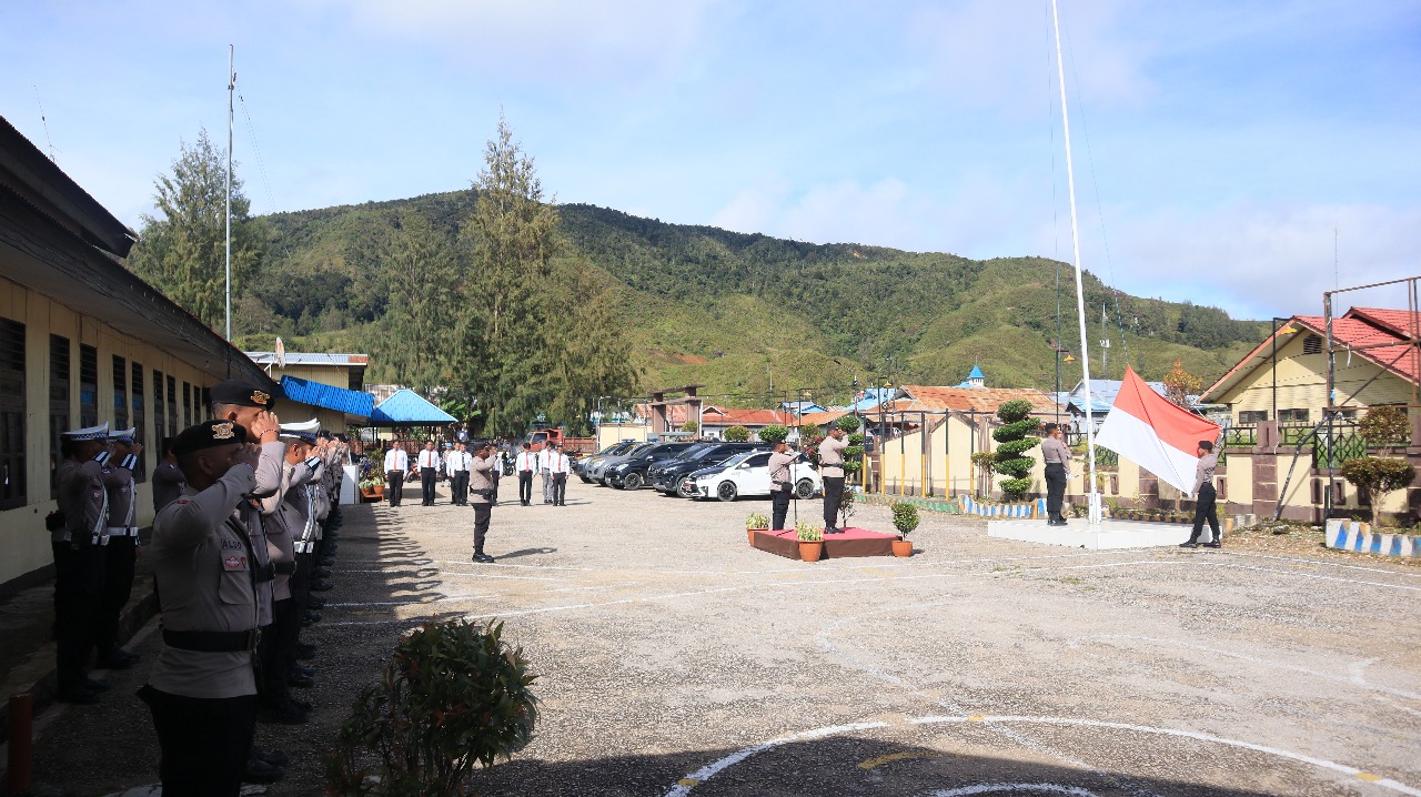 Upacara ini diikuti oleh seluruh personel Polres Paniai dan Polsek Paniai Timur sebagai bentuk penghormatan terhadap semangat perjuangan bangsa.