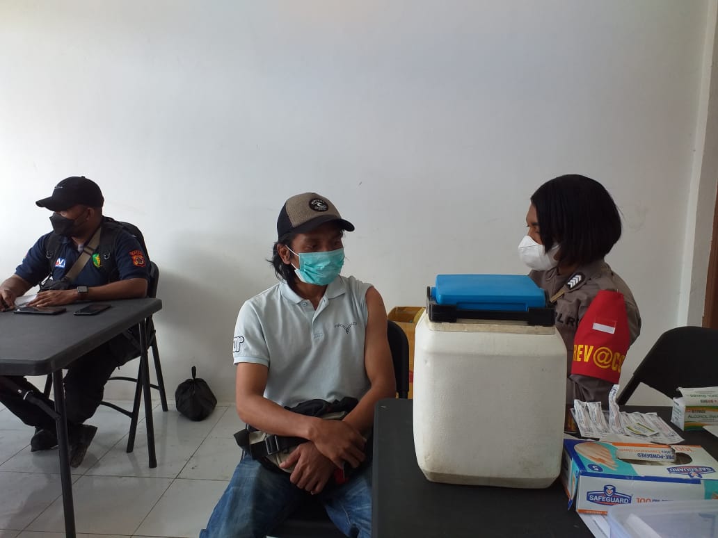 Gebyar Vaksiansi tersebut dihadiri oleh Kabag SDM Polres Paniai AKP Yadang, Kapolsek Pantim AKP Saidah Hobrow, S.H dan Kasat Binmas AKP Y. Harikatang.